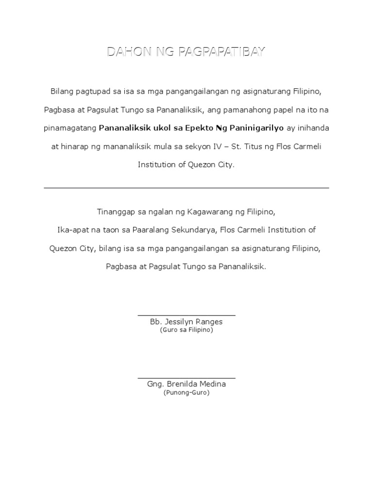 Would result in ng pamagat ng thesis sa filipino disharmony and a breakdown of all the online cheap to social networks rules of propriety. 2 Paglalahad ng. Iii Talaan ng Nilalaman.
